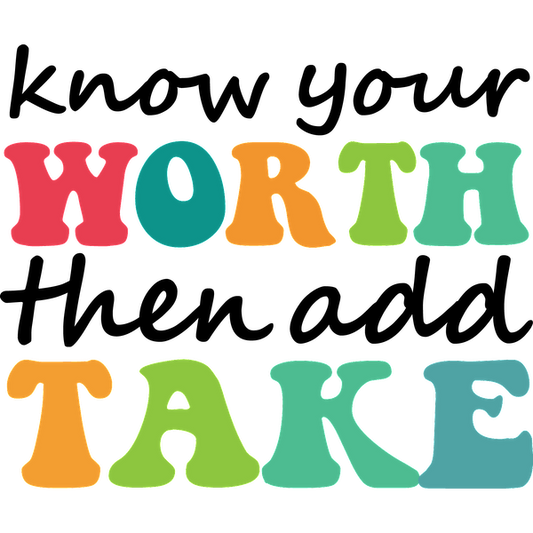 Un diseño tipográfico divertido y colorido que presenta las frases "WORTH" y "TAKE" en letras vibrantes y audaces.