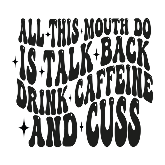 Un diseño tipográfico divertido y atrevido que presenta la frase sobre la cafeína y el descaro, perfecto para una declaración humorística.