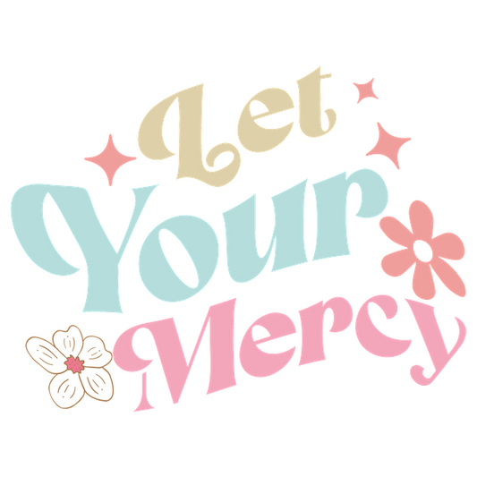 Un diseño alegre y artístico que presenta la frase "Let Your Mercy" en letras coloridas y divertidas con acentos florales.