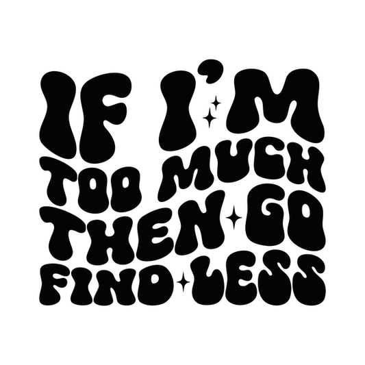 Un diseño tipográfico divertido y audaz que presenta la frase "Si soy demasiado, entonces busca menos" en un estilo peculiar.