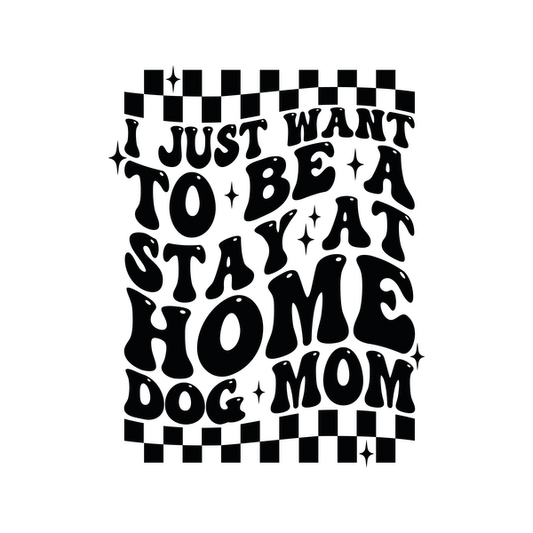 Diseño de texto gráfico divertido que expresa el deseo de ser una "mamá de perro que se queda en casa" y presenta un estilo retro divertido.