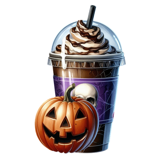Precio habitual A partir de £0.75 GBPPrecio habitualPrecio unitario / por£2.40 GBPPrecio de oferta A partir de £0.75 GBPUn frappuccino festivo con temática de Halloween cubierto con crema batida, junto a una calabaza tallada, ¡perfecto para celebrar la temporada espeluznante!