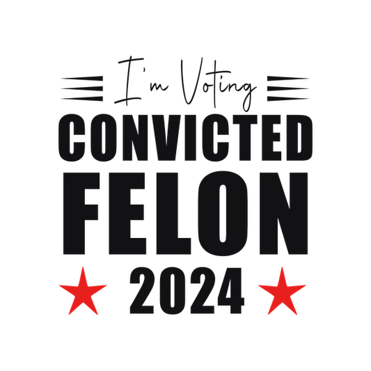 Un diseño gráfico audaz que promueve el derecho al voto de los delincuentes convictos, con el texto "Voy a votar por un delincuente convicto en 2024" con estrellas rojas.
