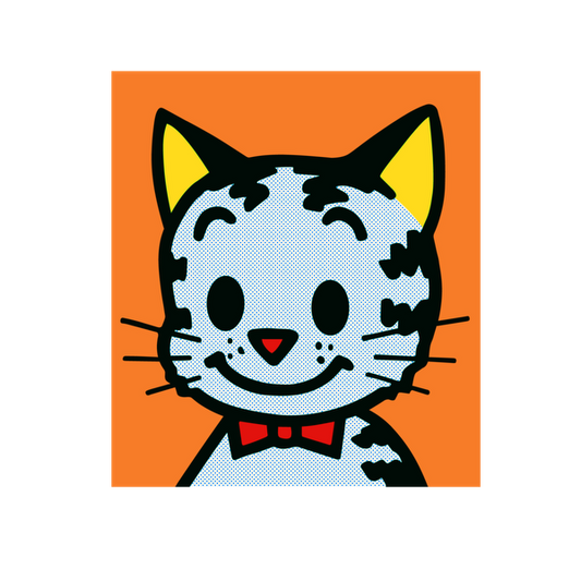Precio habitual A partir de £0.75 GBPPrecio habitualPrecio unitario / por£2.41 GBPPrecio de oferta A partir de £0.75 GBPEsta divertida ilustración presenta un alegre gato de dibujos animados con rayas distintivas y una pajarita roja sobre un fondo naranja vibrante.