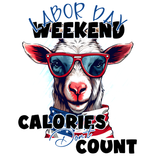 Un gráfico divertido y colorido que presenta una elegante cabra con gafas de sol, celebrando el fin de semana del Día del Trabajo con un lema divertido.