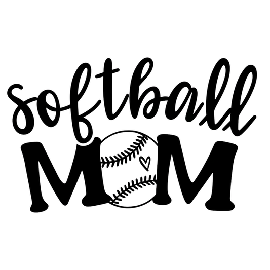 Un diseño elegante que incluye las palabras "Softball MOM" junto con el gráfico de una pelota de softbol, perfecto para las orgullosas mamás deportistas. Transferencias DTF