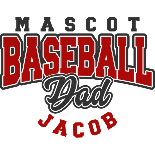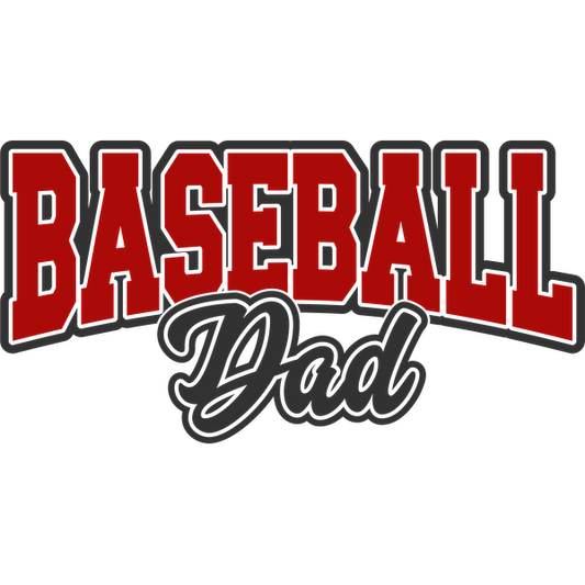 A bold graphic design featuring the phrase "Baseball Dad" in red and black lettering, perfect for sports-loving fathers.DTF Transfers dtf transfers