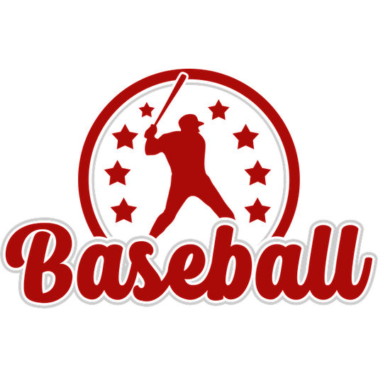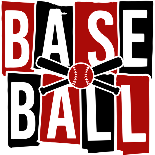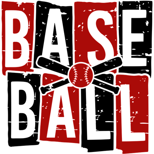 A bold, red graphic featuring the word "BASEBALL" with a baseball centered, perfect for sports enthusiasts.DTF Transfers heat press transfers