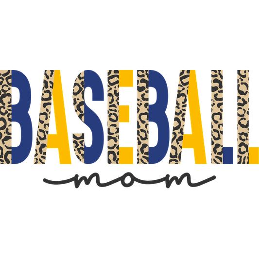 Un gráfico elegante de "Mamá del béisbol" con colores llamativos y un diseño con estampado de leopardo, perfecto para los orgullosos entusiastas del béisbol. Transferencias DTF