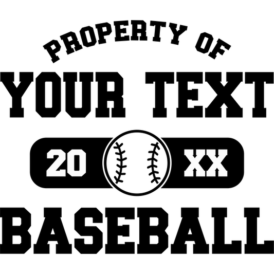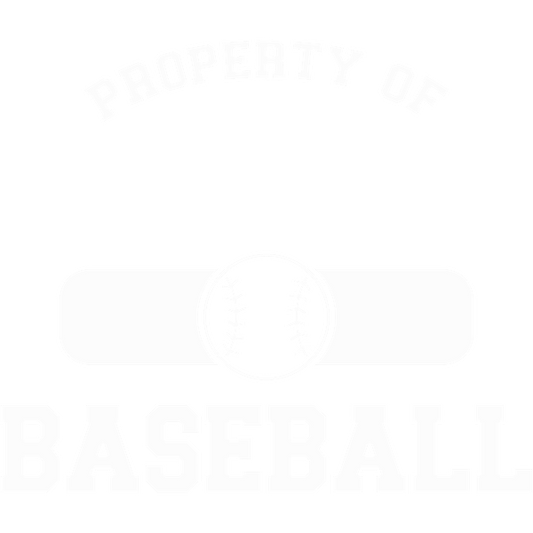 A bold graphic design featuring the phrase "Property of Baseball," accented by a central baseball motif.DTF Transfers dtf prints