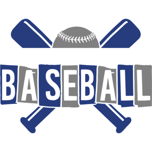 A vibrant baseball-themed graphic featuring a player with a bat, a ball, and bold lettering that spells "Baseball."DTF Transfers dtf transfers