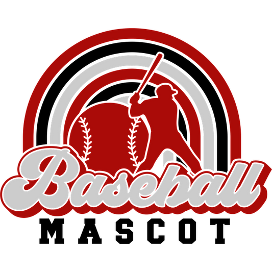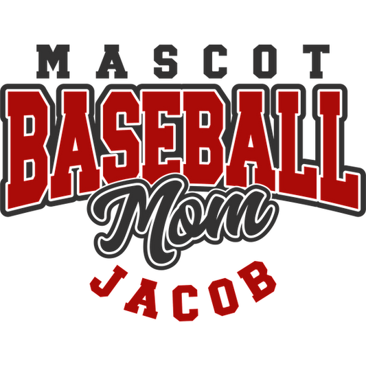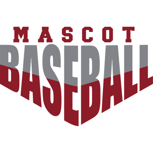 A bold graphic featuring the words "MASCOT BASEBALL" in red and gray, perfect for a sports-themed design.DTF Transfers heat press transfers
