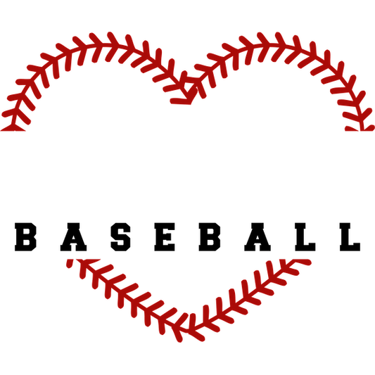 A creative design featuring a heart shape made from red baseball stitching, showcasing a blend of love and sport.DTF Transfersdtf regular iron