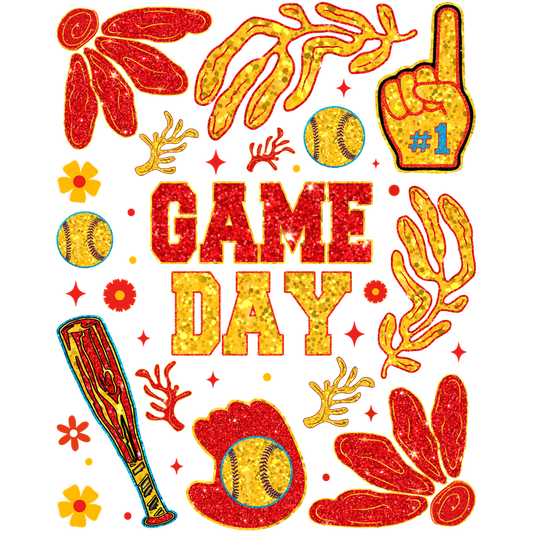 A playful design featuring a baseball-themed logo with a prominent "GA" in gray, surrounded by red stitching.DTF Transfers heat press transfers