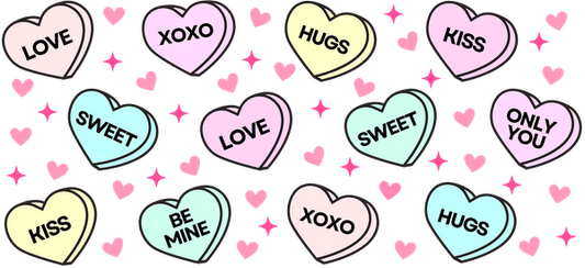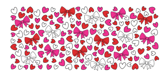 A whimsical mix of hearts and bows create a fun, colorful pattern.UV Transfers