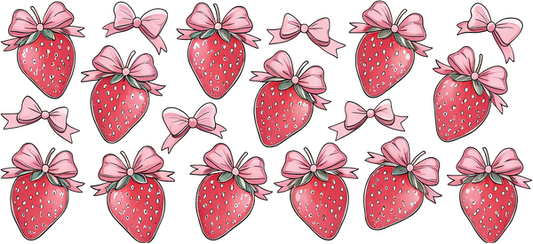 Colorful illustrations of strawberries adorned with pink bows, perfect for adding a cheerful touch to any design project.UV Transfers dtf prints