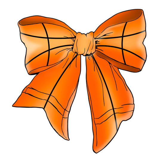 Un lazo naranja vibrante con diseño de baloncesto, perfecto para agregar un toque divertido a diversas manualidades o atuendos.