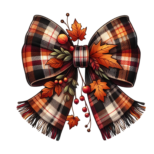 Un lazo a cuadros vibrante adornado con hojas y bayas de otoño, perfecto para agregar un toque estacional a cualquier decoración.