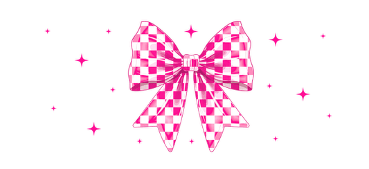This vibrant hair ribbon features a charming pink and white checkered pattern.UV Transfers