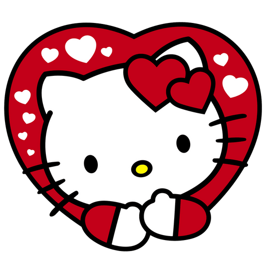 Hello Kitty Valentine's Day decorations feature hearts and various poses.UV Transfers