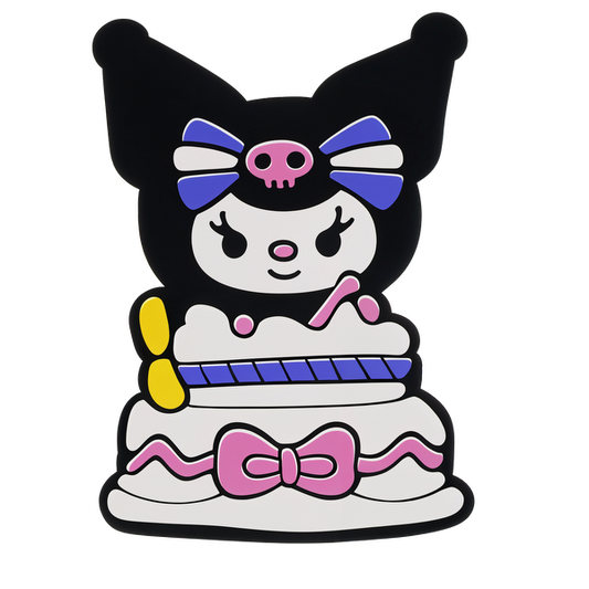 Esta colorida figura con forma de pastel presenta un lindo personaje con un lazo de calavera, que combina un diseño divertido con una estética encantadora. Transferencias DTF