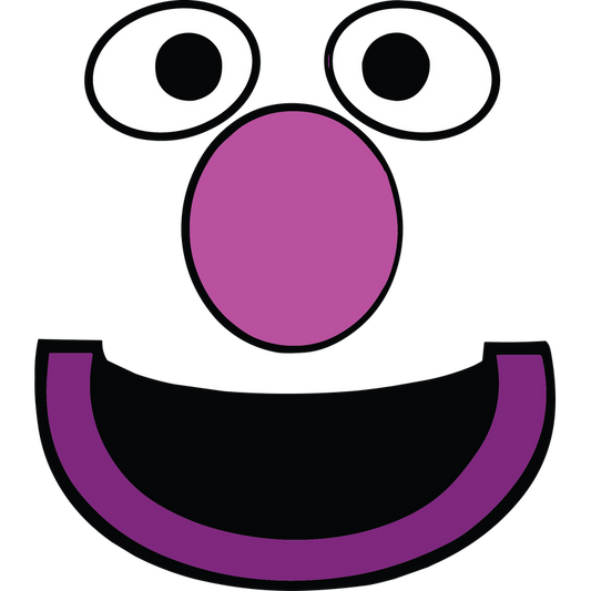 This playful character features a vibrant purple nose, large eyes, and a big smiling mouth, radiating a cheerful vibe.DTF Transfers dtf prints