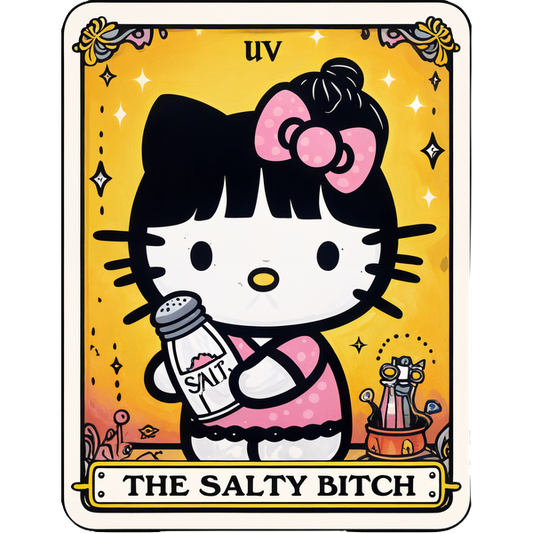 Precio habitual A partir de £0.75 GBPPrecio habitualPrecio unitario / por£2.40 GBPPrecio de oferta A partir de £0.75 GBPUna ilustración divertida de un personaje de gato que sostiene un salero, rodeado de elementos extravagantes y colores vibrantes. Transferencias DTF