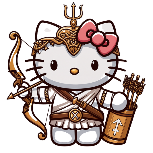 Cute Hello Kitty dressed as an archer warrior, complete with a bow, arrows, and intricate armor detailing.DTF Transfers dtf transfers