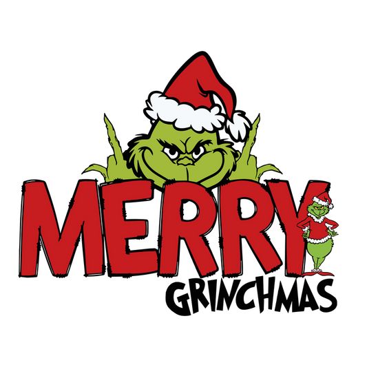 Celebrate the season with this playful "Merry Grinchmas" design featuring the iconic green Grinch in a festive hat!DTF Transfers dtf prints