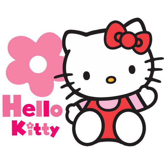 Meet Hello Kitty, the adorable white cat character with a signature red bow, accompanied by a cheerful flower and playful lettering!DTF Transfers