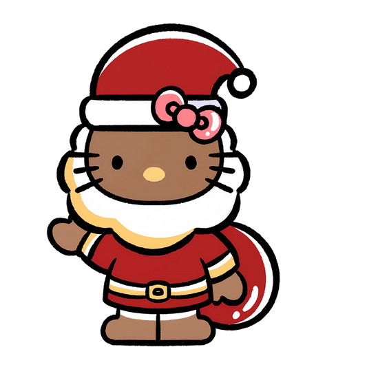 Meet a festive character dressed as Santa, complete with a red suit, Santa hat, and a cute pink bow!DTF Transfers