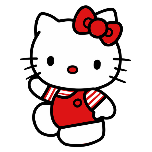 Cute Hello Kitty character in a red outfit with a matching bow, embodying charm and playfulness. Perfect for fans!DTF Transfers