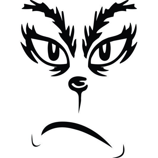 A stylized illustration of a grumpy face with narrowed eyes and a frowning mouth, exuding a displeased expression.DTF Transfers dtf prints