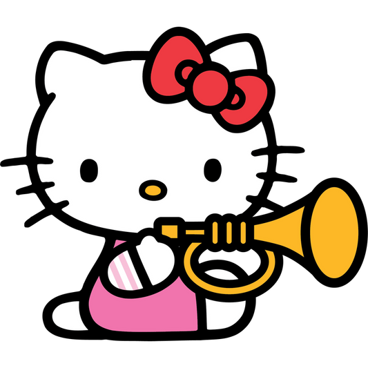 This adorable character, dressed in a pink outfit with a bow, is playing a trumpet with enthusiasm.DTF Transfers