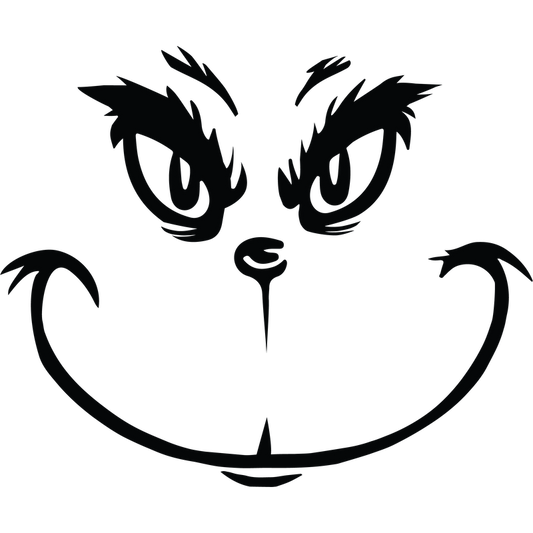 A playful illustration of a mischievous cat face, featuring sharp eyes and a wide, sly grin.DTF Transfers dtf transfers heat press transfers