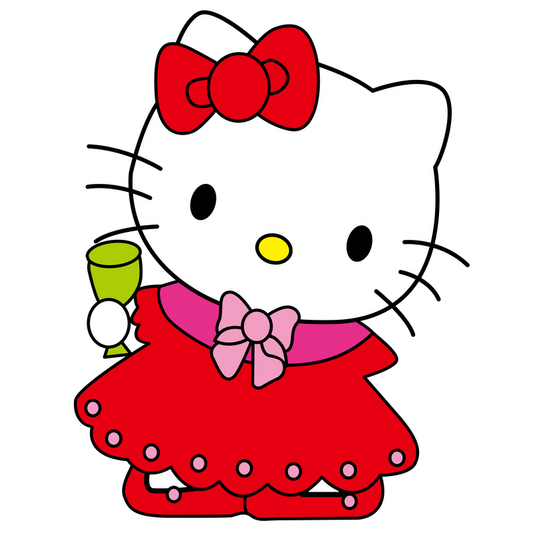 Meet Hello Kitty, the adorable white cat character sporting a vibrant red dress and a matching bow, ready to play!DTF Transfers