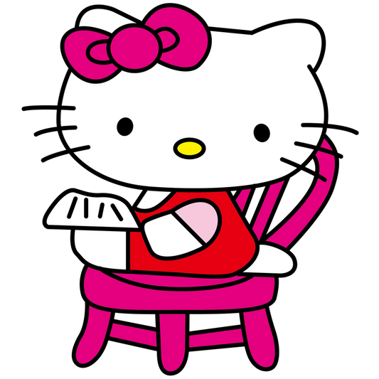 Precio habitual A partir de £0.75 GBPPrecio habitualPrecio unitario / por£2.40 GBPPrecio de oferta A partir de £0.75 GBPHello Kitty is seated on a vibrant pink chair, holding a piece of paper and wearing her signature red dress and pink bow.DTF Transfers