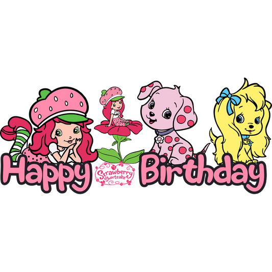 Celebrate with a vibrant "Happy Birthday" design featuring cheerful characters, flowers, and playful colors perfect for a festive occasion!DTF Transfers
