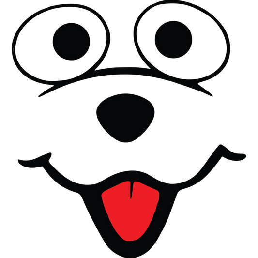 A playful cartoon dog's face with large eyes, a happy expression, and a bright red tongue.DTF Transfers dtf prints