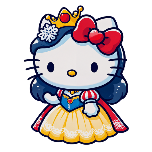 Meet Hello Kitty dressed as Snow White, complete with a crown, vibrant dress, and classic red bow for a charming look!DTF Transfersdtf regular iron