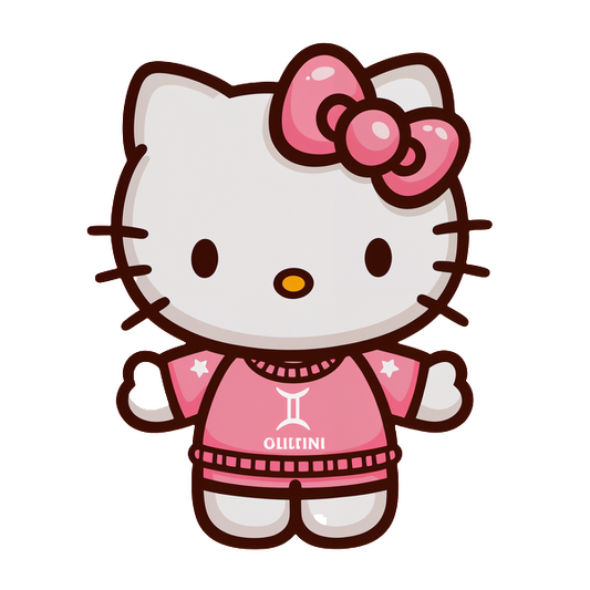 Cute Hello Kitty character dressed in a pink outfit with a "Gemini" symbol and a matching bow, spreading cheer.DTF Transfersdtf regular iron