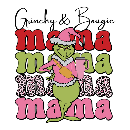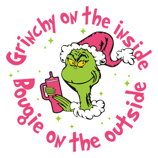 A festive design featuring the Grinch with the playful phrase "Grinchy on the inside, Bougie on the outside."DTF Transfers dtf transfers