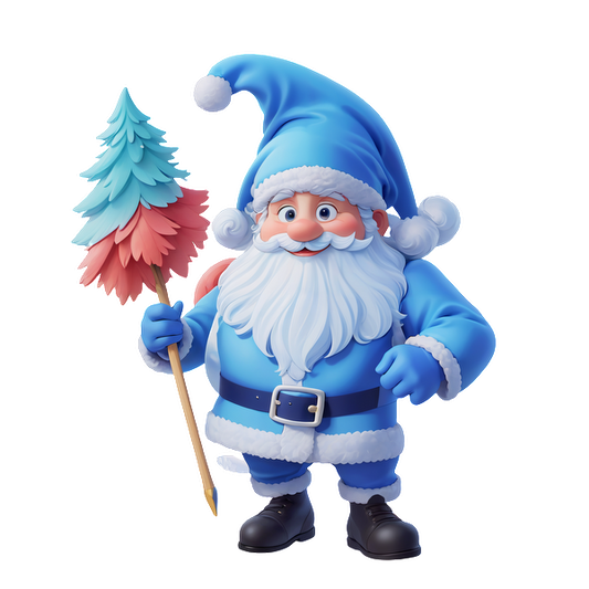 Precio habitual A partir de £0.75 GBPPrecio habitualPrecio unitario / por£2.39 GBPPrecio de oferta A partir de £0.75 GBPEste alegre Papá Noel de estilo de dibujos animados está vestido con un traje azul y sostiene un árbol festivo y colorido. Transferencias DTF