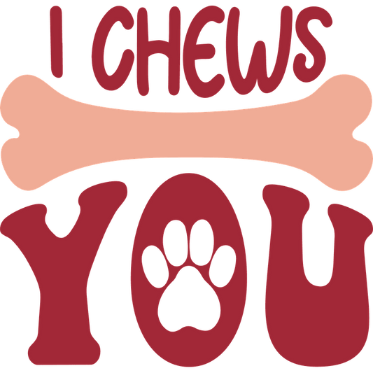 A fun and playful design featuring the words "I CHEWS YOU" with a bone and paw print, perfect for pet lovers!DTF Transfers