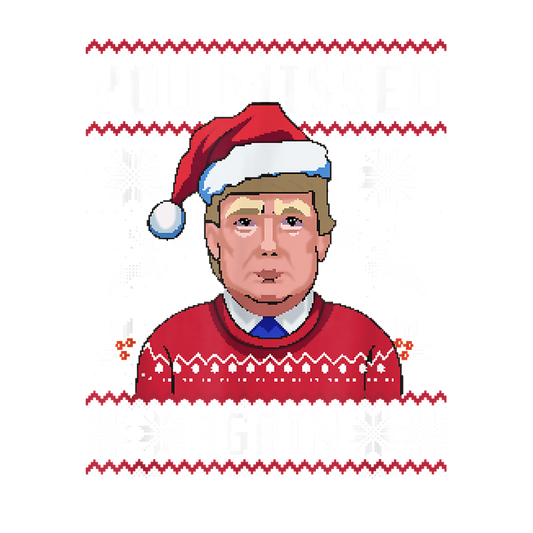 A festive sweater design Trump in a Santa hat, set against a playful holiday pattern with the text "YOU MISSED AGAIN."DTF Transfers heat press transfers dtf prints