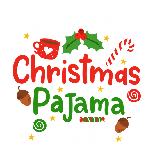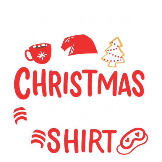 Celebrate the holiday spirit with this fun "This is My Christmas Pajama Shirt" design, featuring festive icons like a Santa hat and hot cocoa!DTF Transfersdtf regular iron