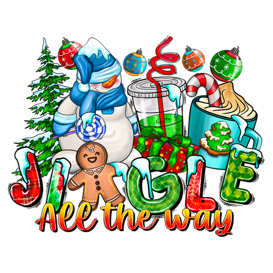 Celebrate the festive season with this colorful, whimsical design featuring a snowman, gingerbread, holiday treats, and cheerful decorations!DTF Transfers dtf transfers