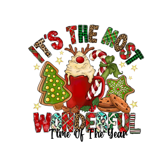 Celebrate the festive season with this cheerful design featuring a holiday drink, cookies, and vibrant Christmas-themed elements!DTF Transfers heat press transfers