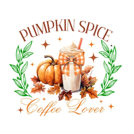 Celebre el otoño con este encantador diseño "Pumpkin Spice Coffee Lover" que incluye una deliciosa bebida con especias de calabaza y decoraciones de temporada.