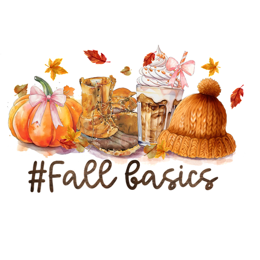 ¡Abrace el otoño con elementos acogedores: calabazas, un gorro tejido, un delicioso café y botas rústicas, resaltados por #FallBasics!
